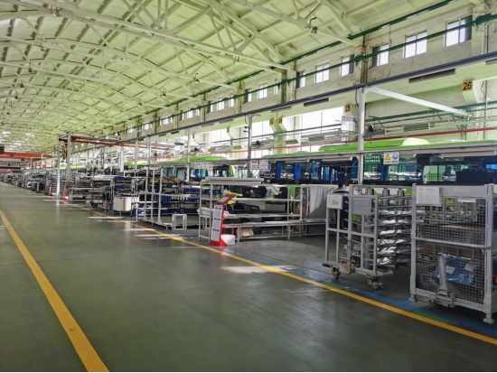 2011 年 9 月,欧辉客车广东工厂投产,形成“一个中心、两个工厂”布局(北京为中心,京粤为基地),总产能 30000 台/年。